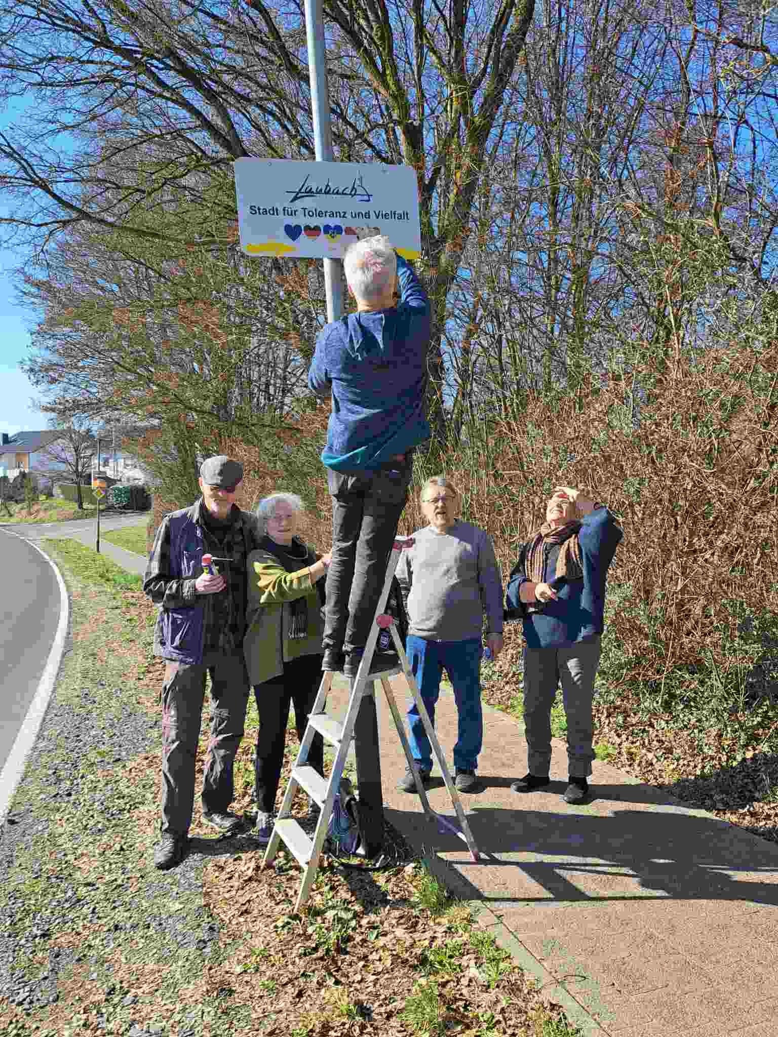 Am 5. März trafen sich einige Aktive der AG, um Schmähaufkleber auf unseren Willkommensschildern, die jeweils an den Ortseinhängen aufgestellt sind, zu entfernen.